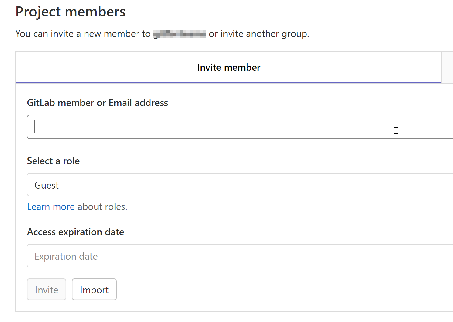 ● Invite member 탭 > GitLab member or Email address
